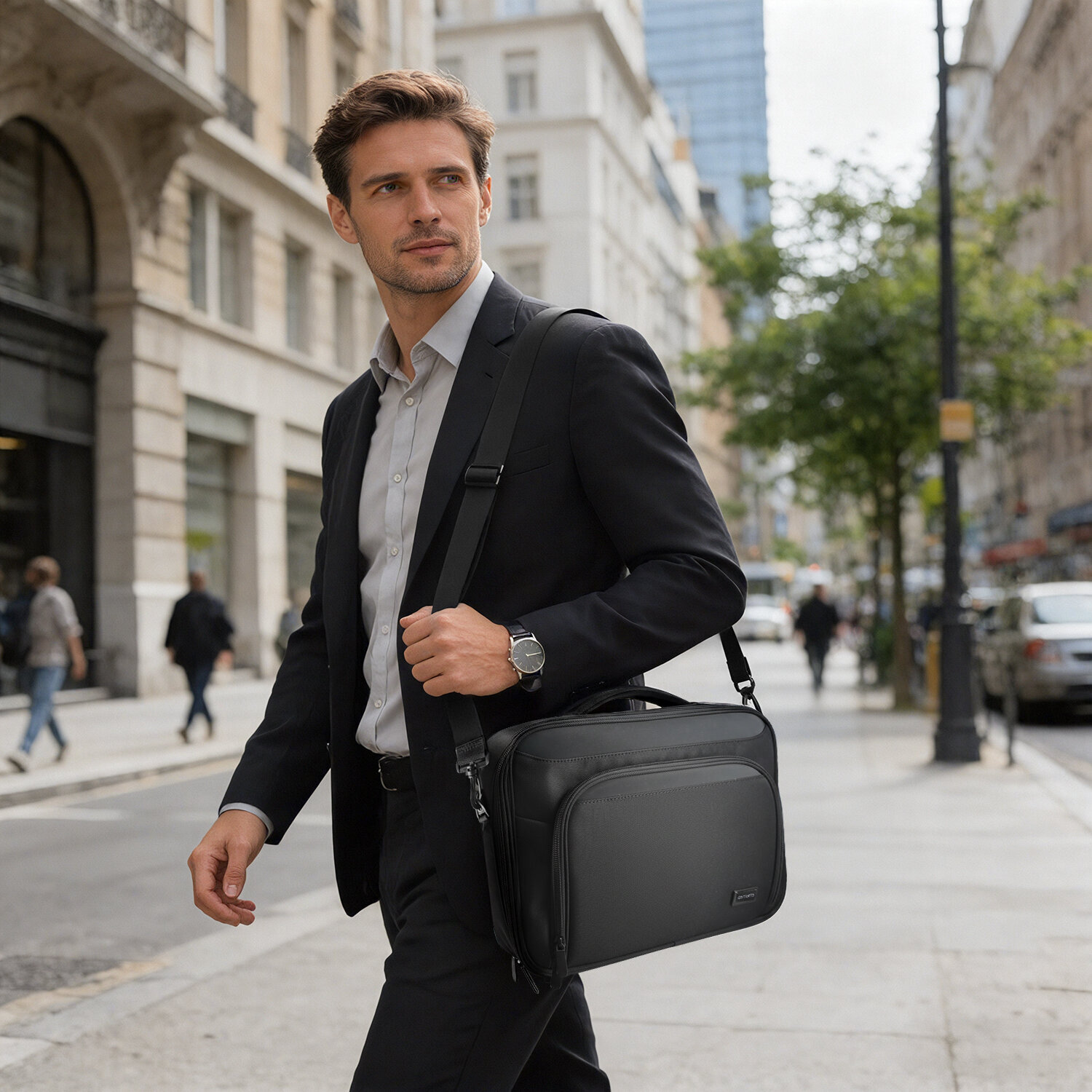 Die stoßfeste Hartschalenstruktur schützt dein Notebook zuverlässig vor Schlägen, Druck und den Belastungen des Alltags. Die stoßfeste Hartschalenstruktur schützt dein Notebook zuverlässig vor Schlägen, Druck und Stößen des Alltags. Die integrierten Zubehörfächer bieten ausreichend Platz für Maus, Ladegerät, Kabel, Dokumente und Unterlagen. Alles bleibt übersichtlich, sortiert und schnell zugänglich. Mit dem Trolley-Gurt an der Rückseite lässt sich die Tasche sicher am Rollgepäck befestigen, damit du entspannt und komfortabel reist.