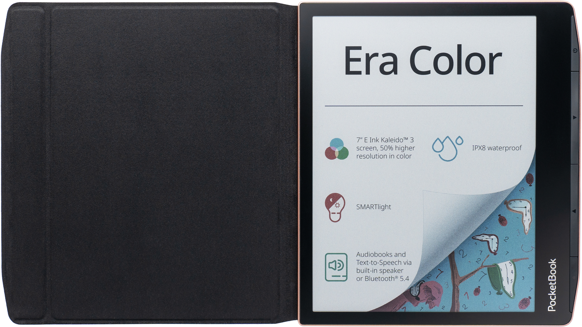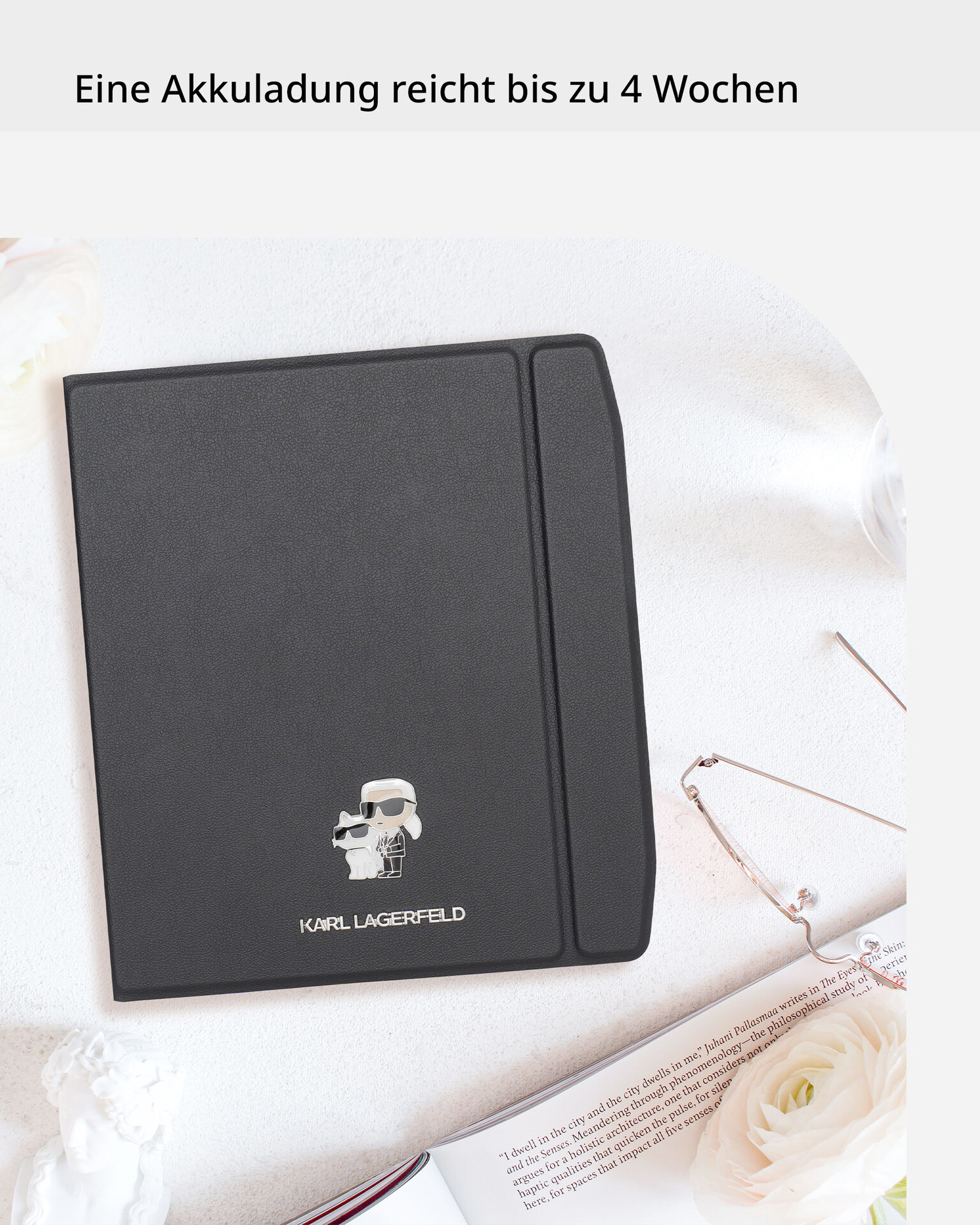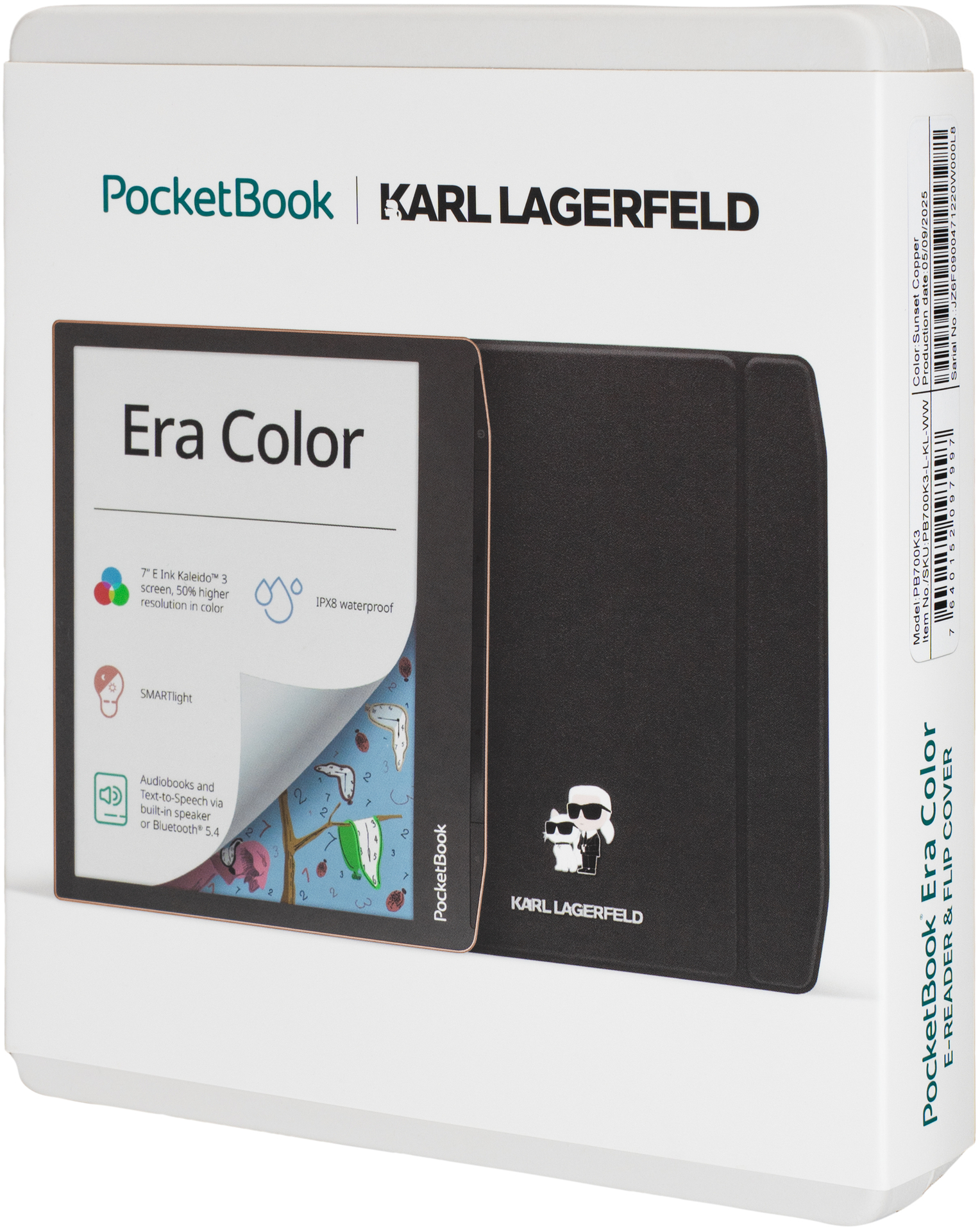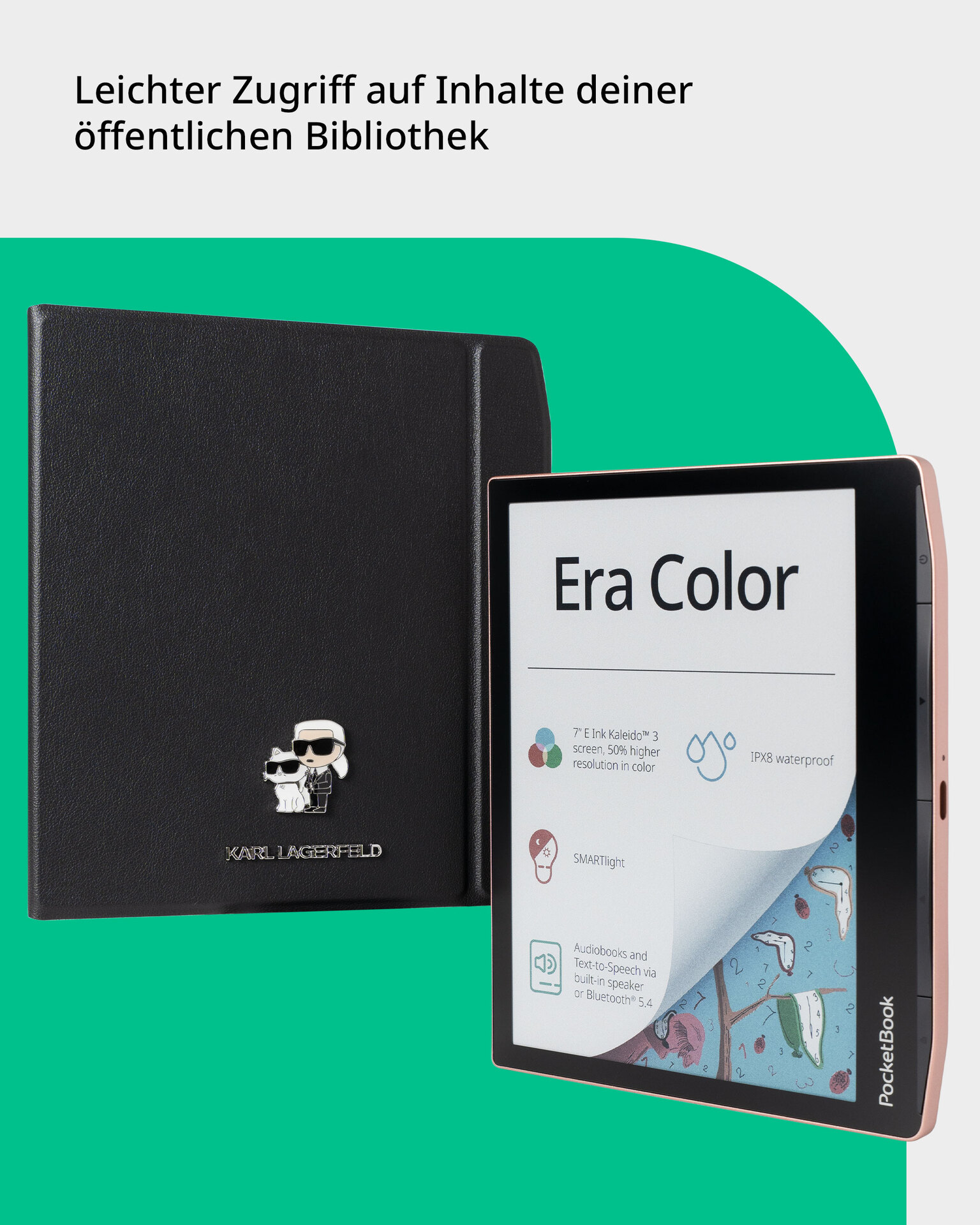 Neben seinen technischen Highlights überzeugt der E-Reader auch optisch: In der limitierten Fashion Edition ist der Era Color im exklusiven Farbton Sunset Copper inklusive einer Flip-Schutzhülle im Design von Karl Lagerfeld erhältlich. Die Hülle schützt das Gerät zuverlässig, aktiviert beim Öffnen und Schließen automatisch die Sleep-Cover-Funktion und sorgt mit Magnetverschluss für sicheren Halt. Gleichzeitig bleibt das edle Design des E-Readers perfekt in Szene gesetzt.