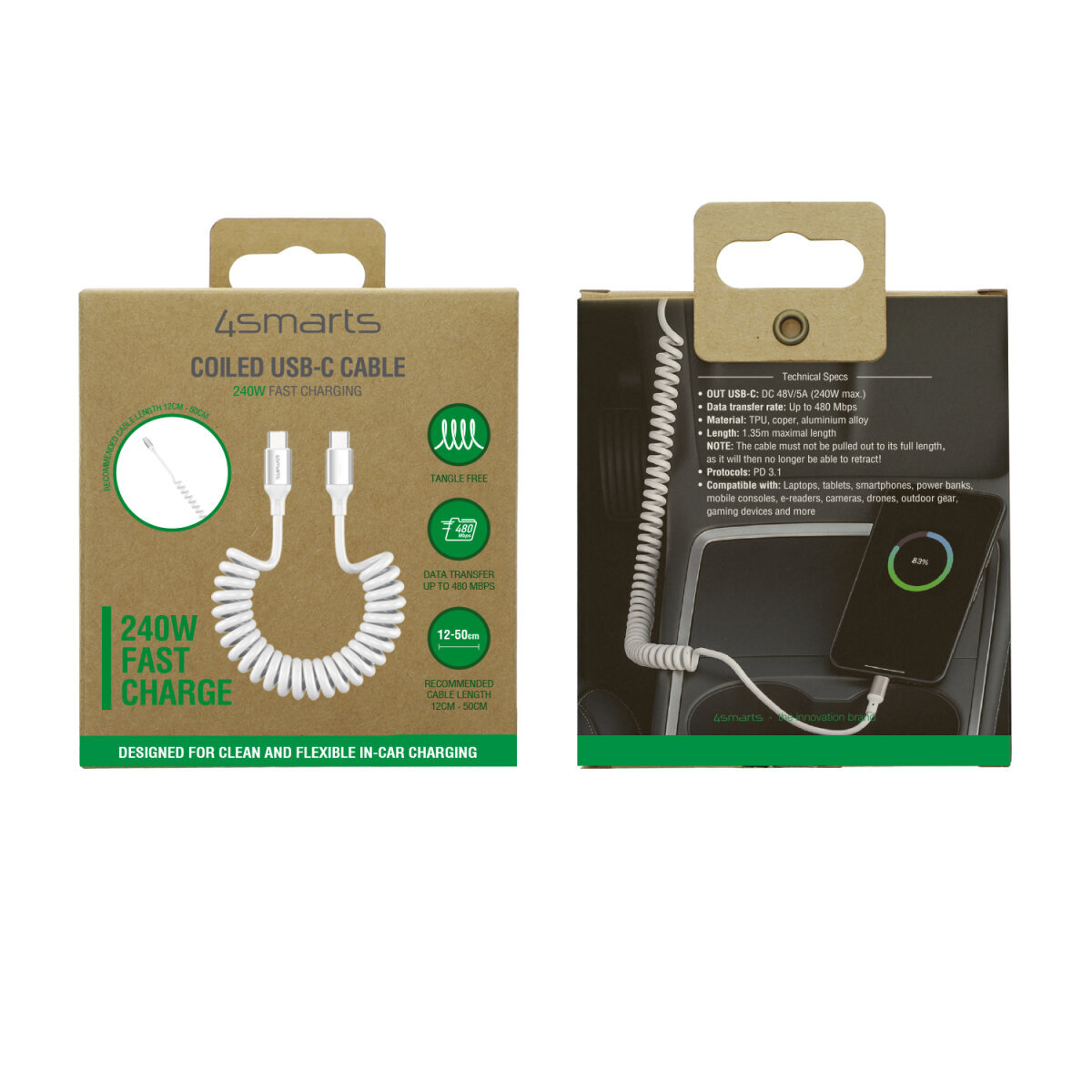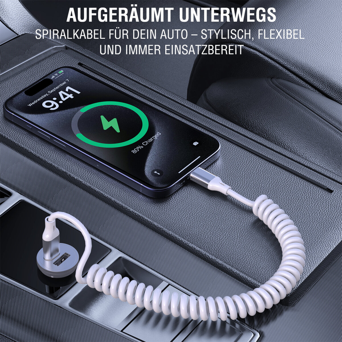 Dank der spiralförmigen Struktur bleibt dein Kabel kompakt, entwirrt sich von selbst und blockiert weder Schalthebel noch Sichtlinien im Auto. Perfekt abgestimmt auf Android Auto und Apple CarPlay – für stressfreie Fahrten, bei denen alles da bleibt, wo es hingehört.
