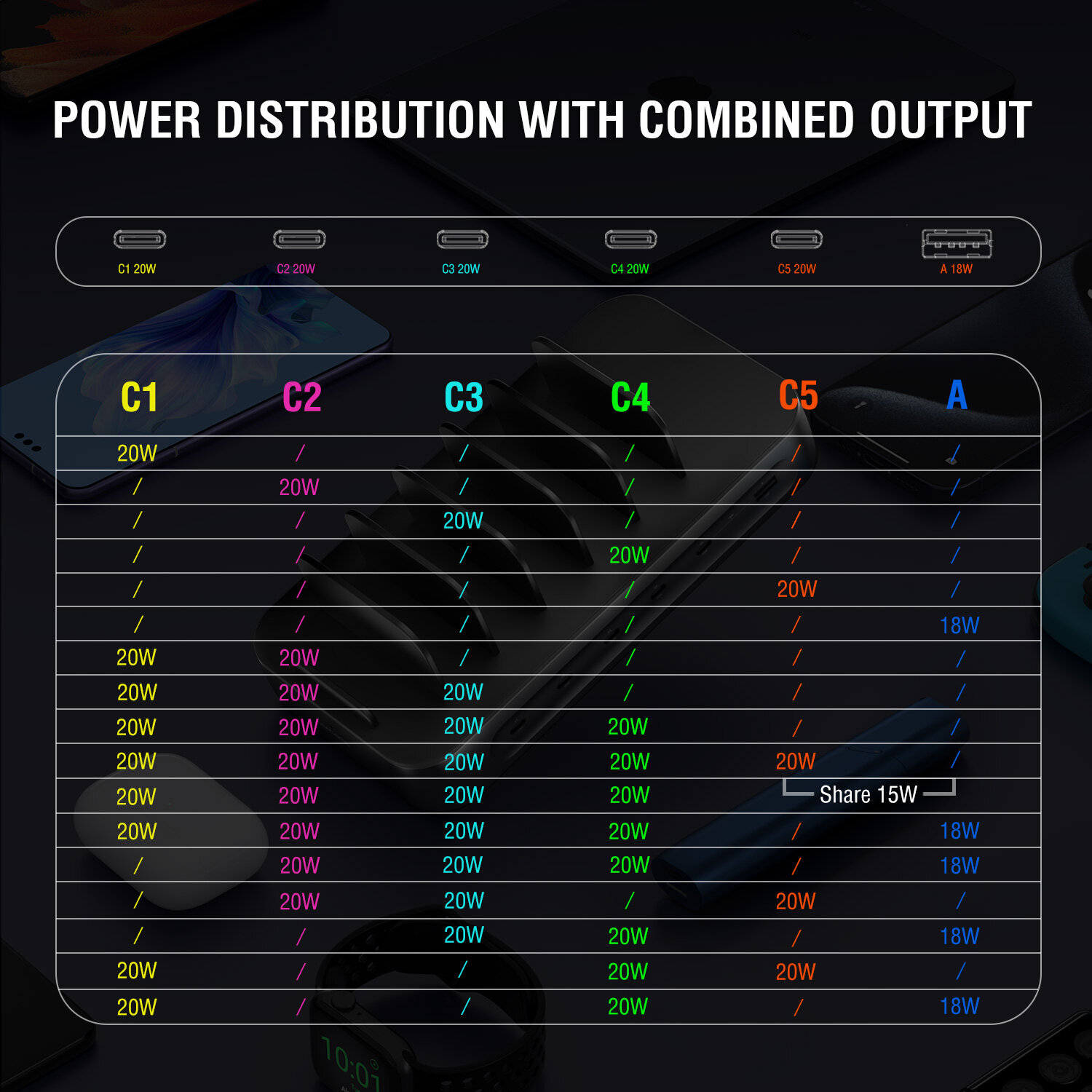 - Schnelle Stelle: Bis zu 5 Geräte parallel mit 20 Watt aufladen