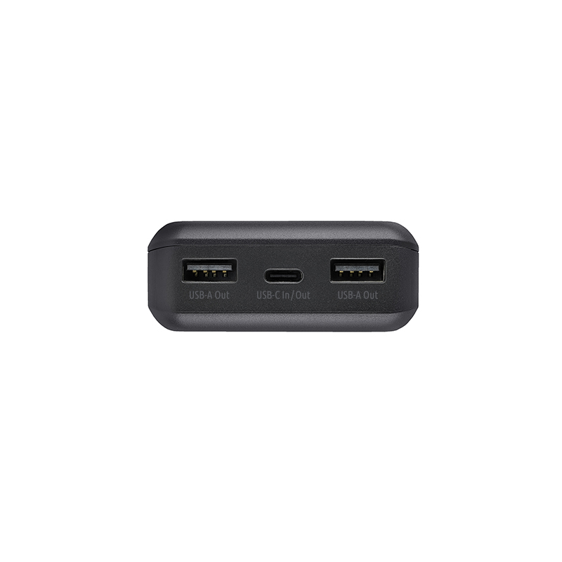 Die Powerbank ist mit einem modernen Lithium-Polymer-Akku ausgestattet und verfügt über einen USB-C-Ein- und Ausgang sowie zwei USB-A-Ausgänge. Mit bis zu 2,4 A Ladestrom lassen sich mehrere Geräte gleichzeitig und zuverlässig mit Energie versorgen. Vier integrierte Status-LEDs informieren jederzeit über den aktuellen Ladezustand.