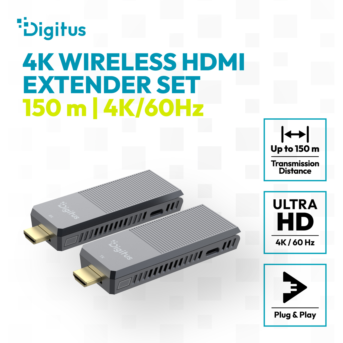 Produktinformationen "DIGITUS 4K Wireless HDMI Extender Set, 150 m, 4K/60Hz"