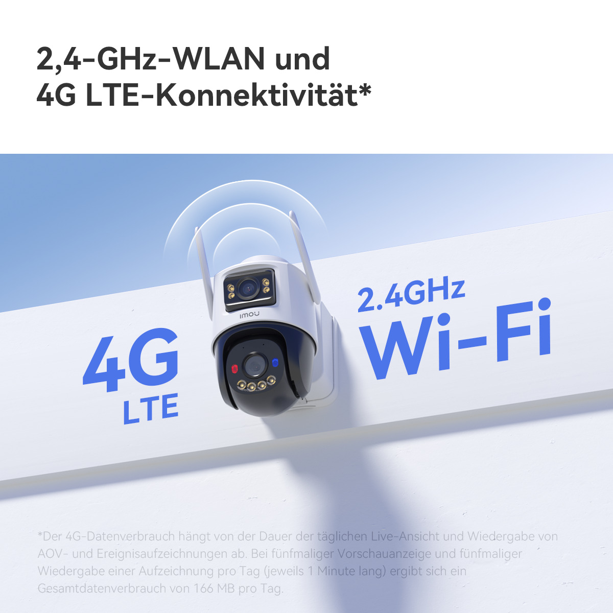 - Zwei Konnektivitätsoptionen - Wählen Sie je nach Bedarf zwischen 2,4 GHz-WLAN oder 4G-Mobilfunkdaten
