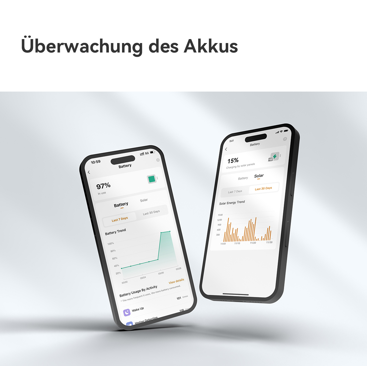 - Informiert Sie, wenn der Akkustand auf 20 % bzw. 10 % sinkt, damit Sie sie rechtzeitig aufladen können