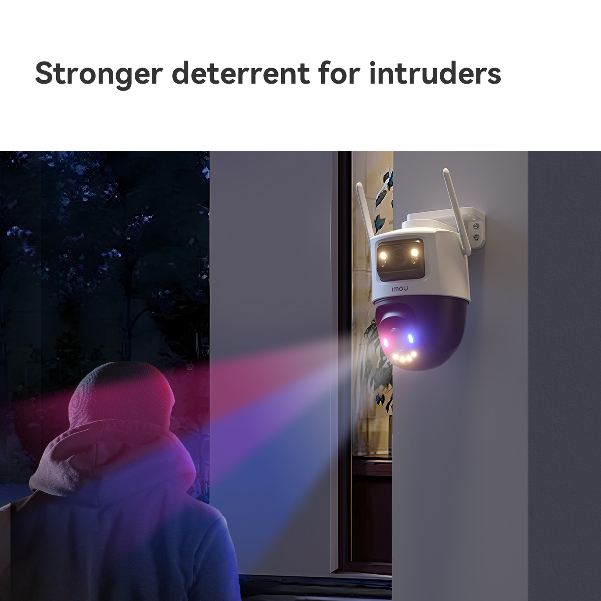 - Aktive Abschreckung - Vertreiben Sie ungebetene Besucher mit dem integrierten Scheinwerfer und der 110-dB-Alarmsirene