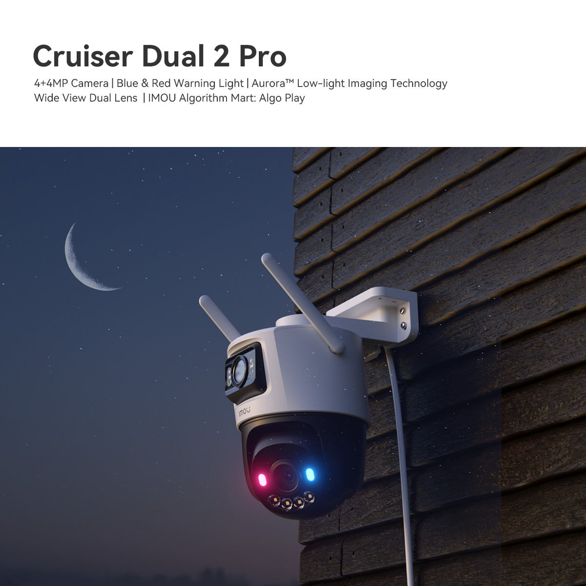 Die IMOU Cruiser Dual 2 Pro bietet professionelle Überwachung mit Dual-Linsen-Technologie für maximale Abdeckung. Mit intelligenter Bewegungserkennung und 2-Wege-Audio behältst du dein Zuhause oder Büro jederzeit im Blick. Flexible Schwenk- und Neigefunktion sowie einfache Einrichtung machen die Kamera sofort einsatzbereit - für rundum zuverlässige Sicherheit.