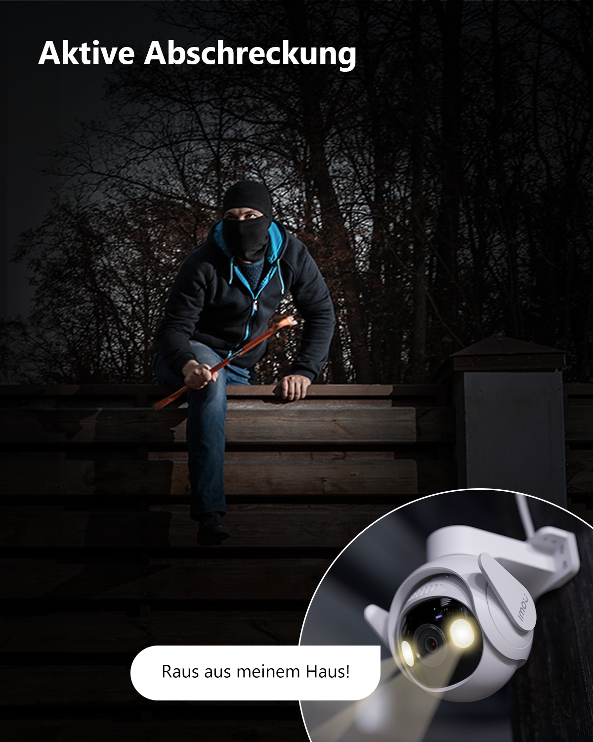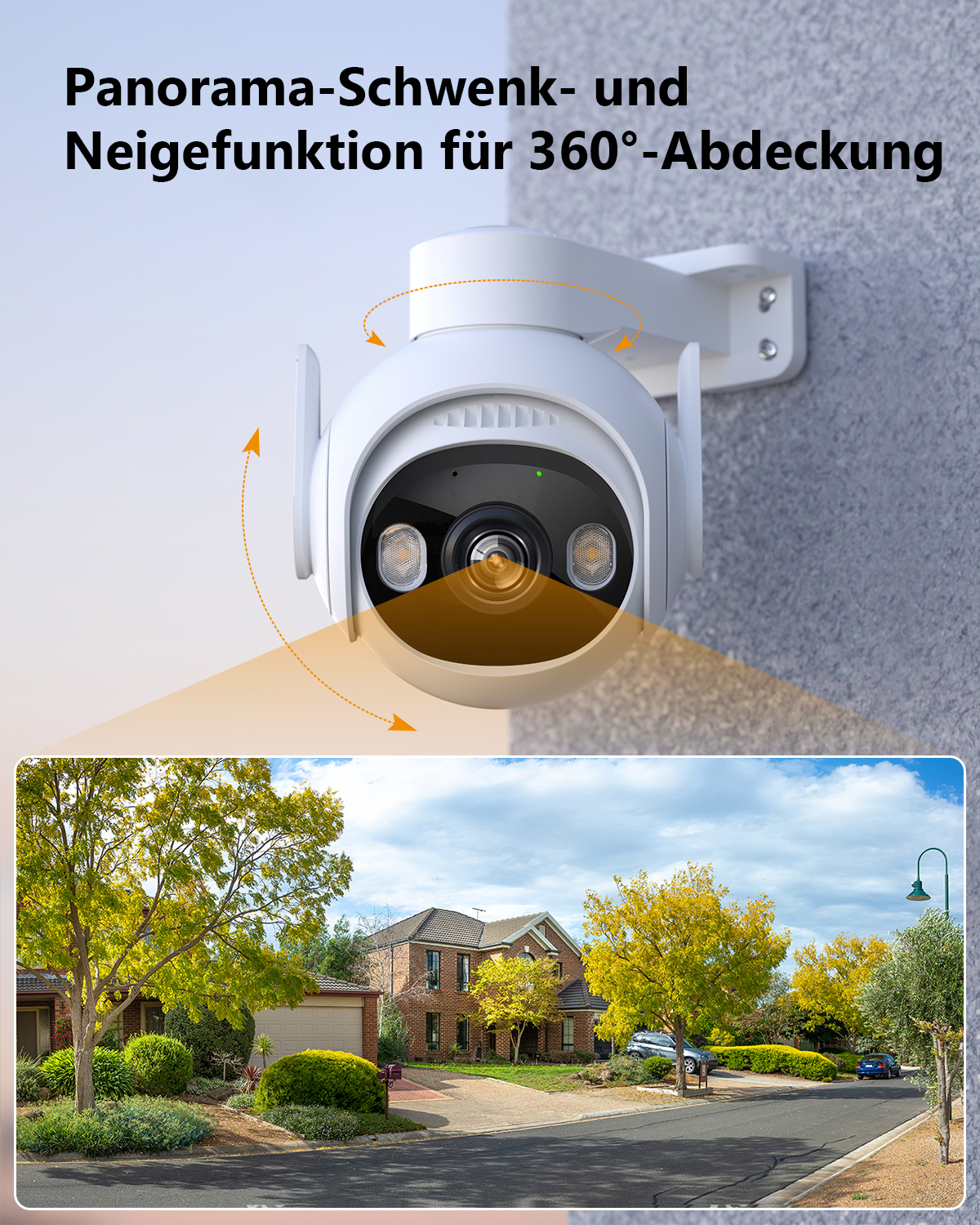 - Aktive Abschreckung - Vertreiben Sie ungebetene Besucher mit dem integrierten Scheinwerfer und der 110-dB-Alarmsirene