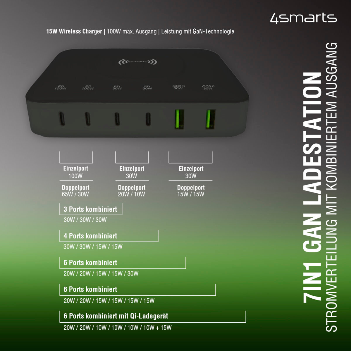 - 4smarts 7in1 GaN Ladestation 100 W Wireless Charger