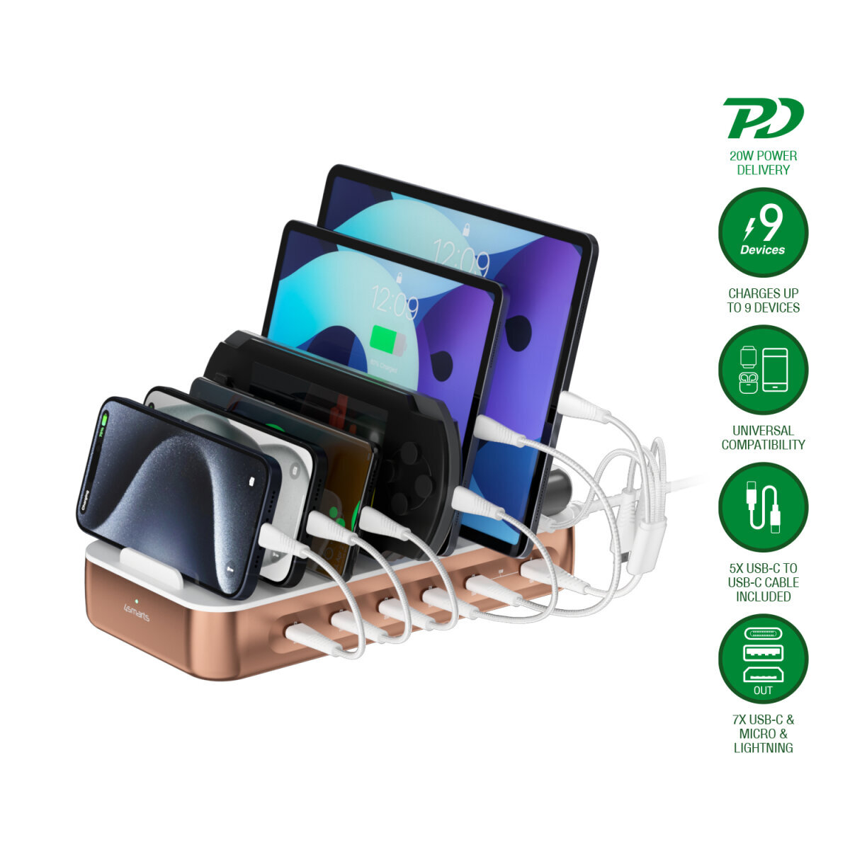- Eine für alles: Lade bis zu 9 Geräte gleichzeitig – ideal für Arbeit, Zuhause oder Vereinsheim