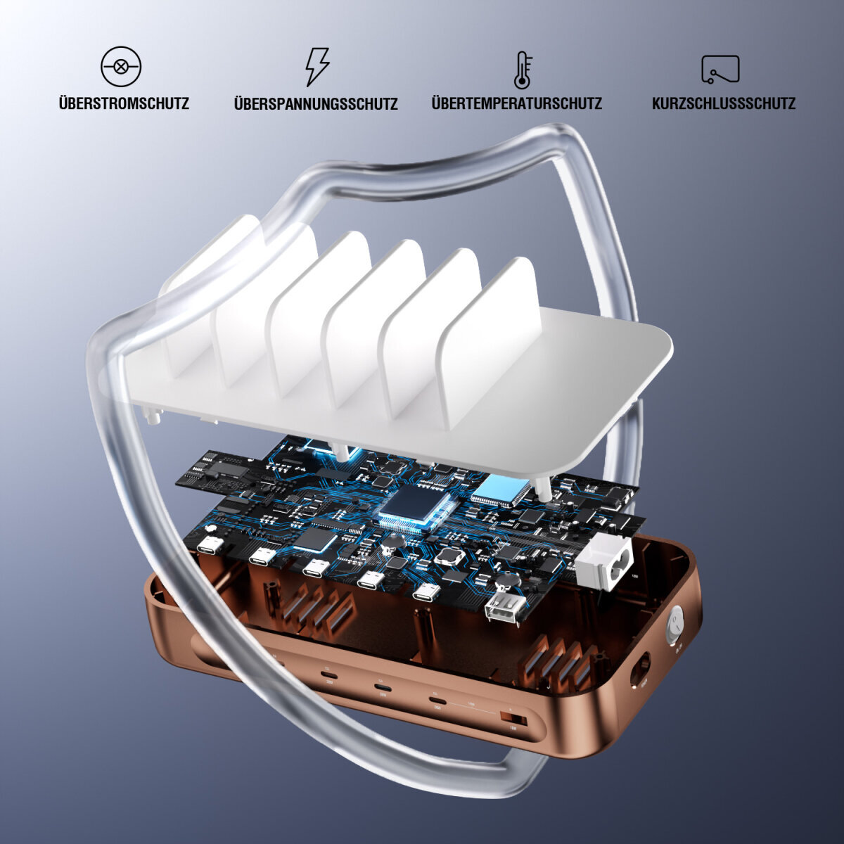 Damit deine Geräte optimal geschützt sind, ist die 4smarts Ladestation mit modernsten Sicherheitsmechanismen ausgestattet: Überstromschutz, Überspannungsschutz, Übertemperaturschutz und Kurzschlussschutz. Mit dem praktischen Power-Knopf kannst du alle angeschlossenen Geräte mit nur einem Klick sicher vom Strom trennen. Diese USB-C-Ladestation für mehrere Geräte ist nicht nur effizient, sondern auch sicher – für dein Zuhause, Büro oder Vereinsleben.