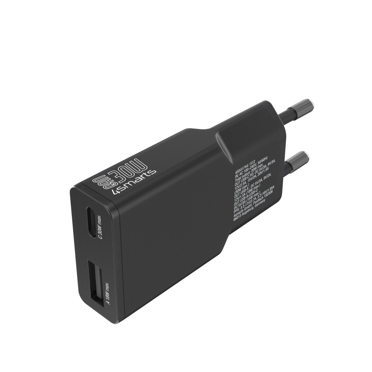 4smarts Netzladegerät PDPlug Slim Duos 30W GaN 1C+1A, schwarz