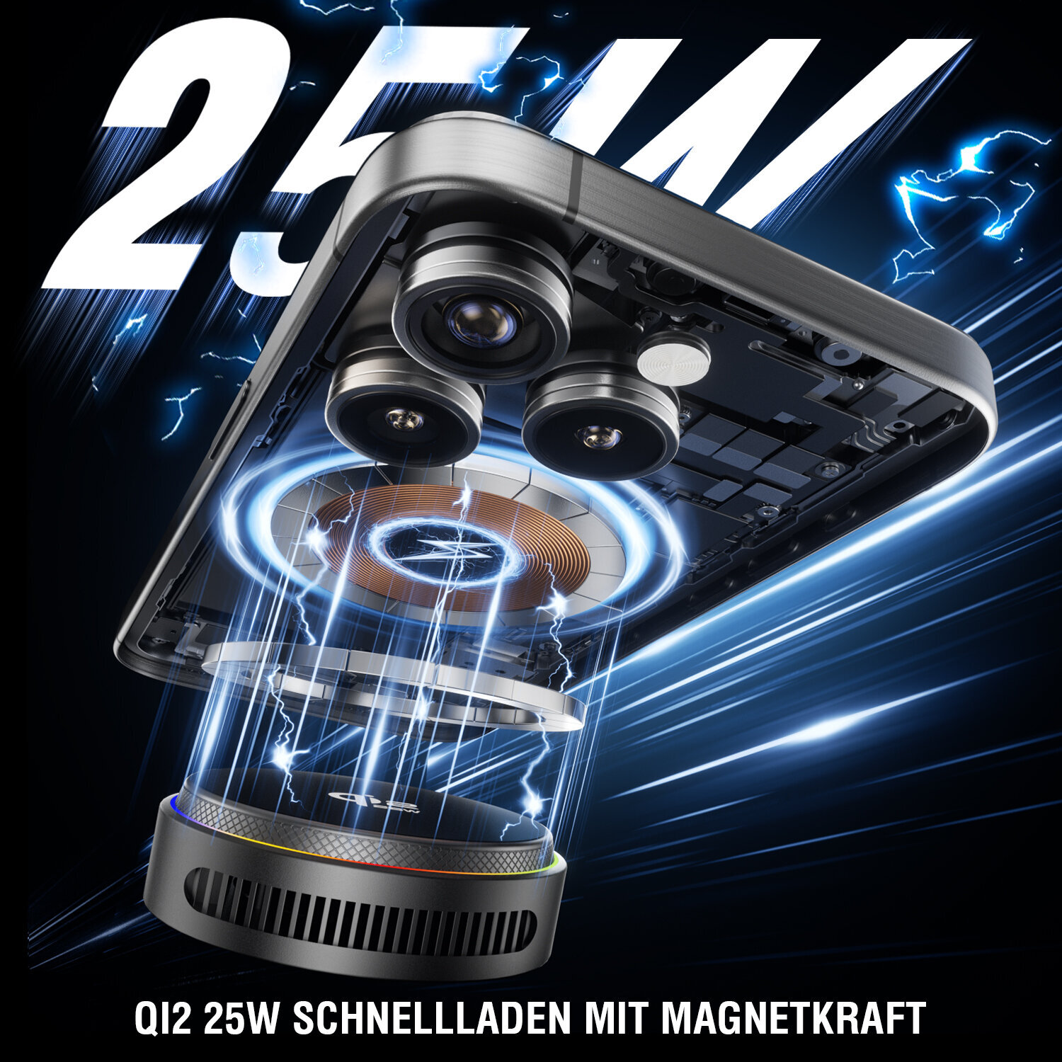 - Qi2 25 W Schnellladen: Magnetisches High-Speed-Charging mit präziser Ausrichtung für maximale Ladeleistung