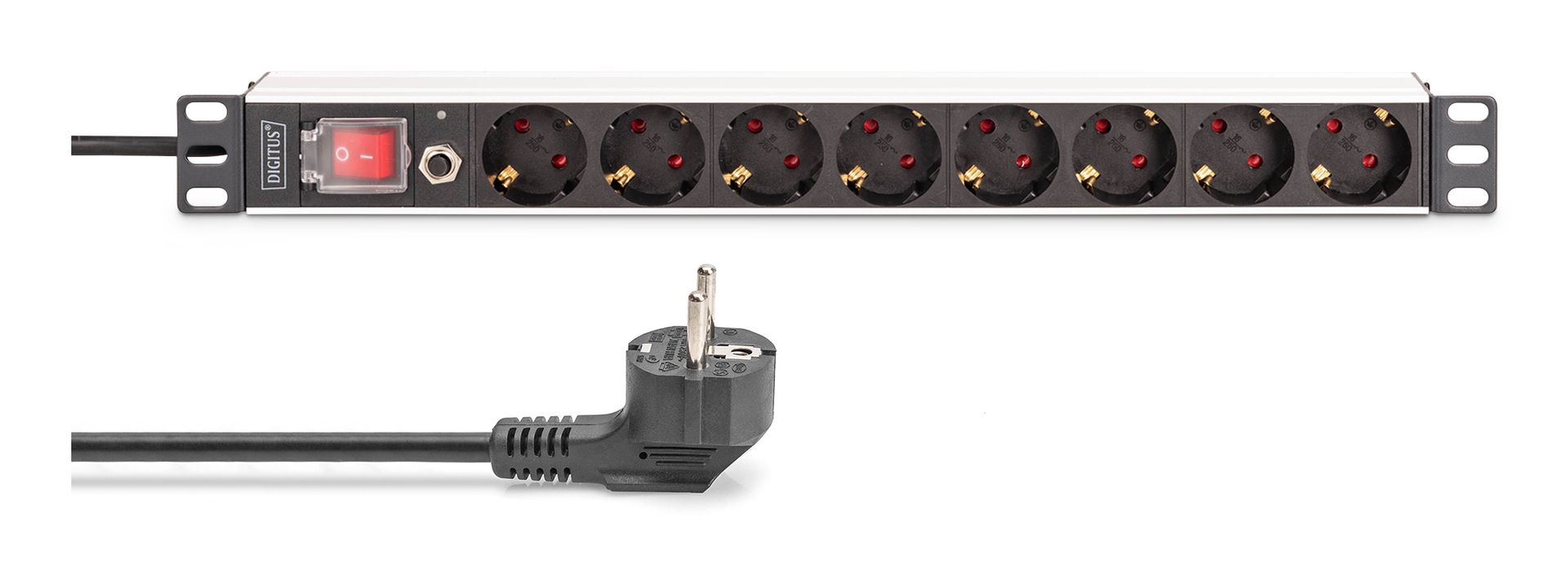 DIGITUS Steckdosenleiste mit Aluminiumprofil 2x Winkelprofile für die Schrankmontage mehr