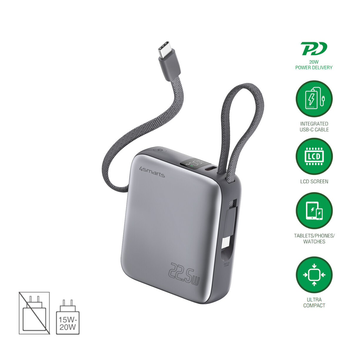 - 4smarts Powerbank Pocket Dual Cord 10000 mAh 22,5 W