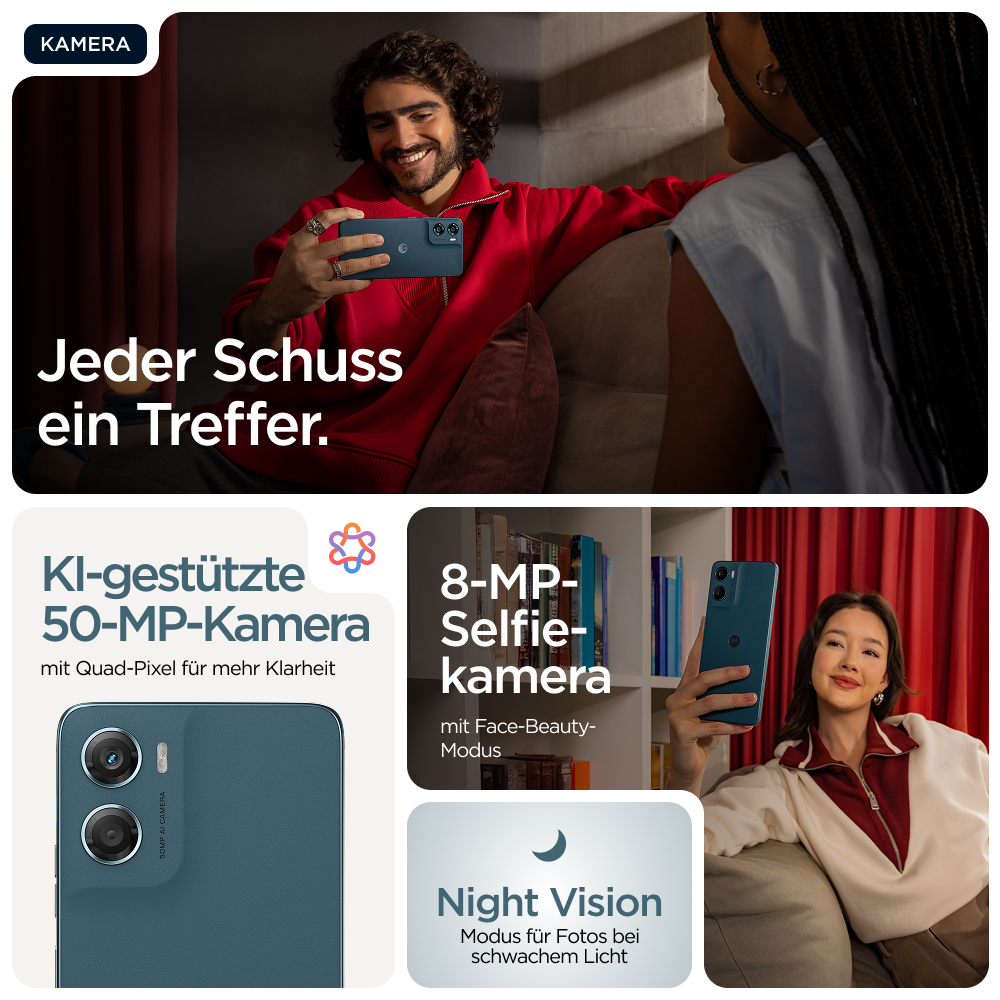 • Exklusive Moto-Erlebnisse und Circle-to-Search. Lass deiner Kreativität freien Lauf, freu dich über die einfache Bedienung und sei ganz entspannt – mit Hello UX und leistungsstarker integrierter Software.