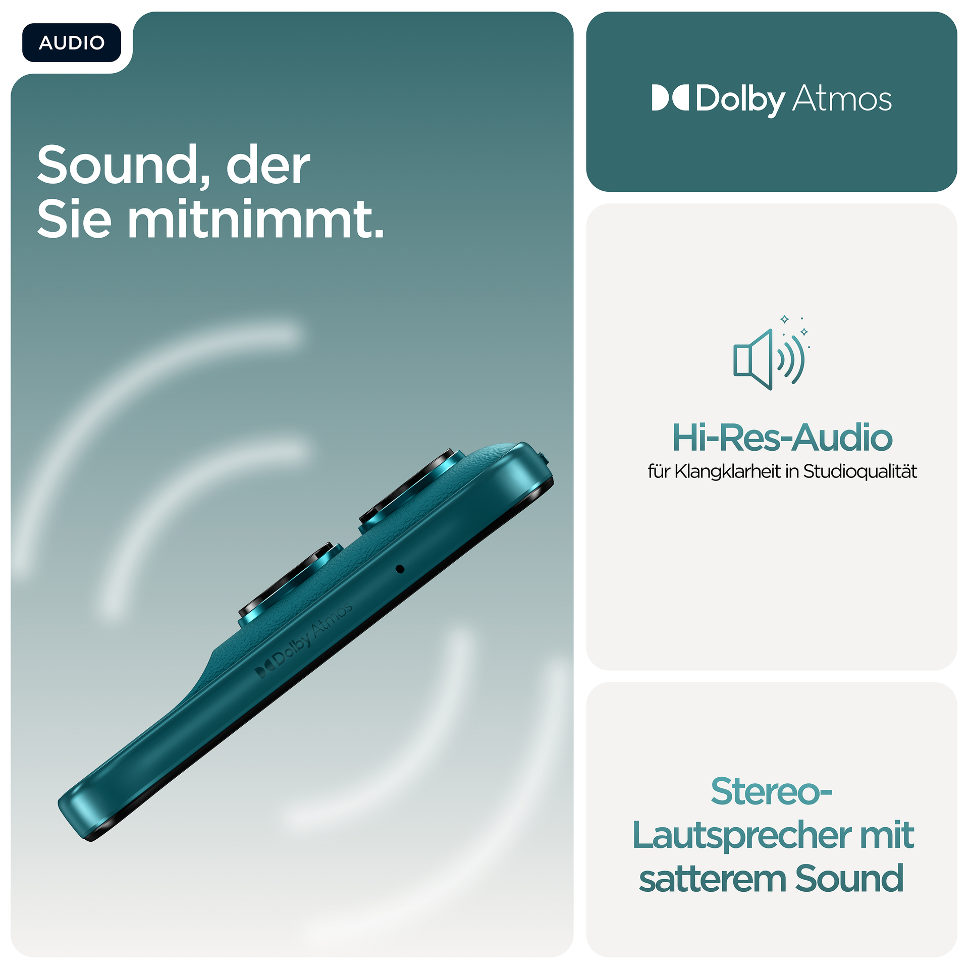 - Stereo-Lautsprecher mit Dolby Atmos. Tauche mit fortschrittlichen Tools in 300 % leistungsstärkeren, multidimensionalen Sound ein.