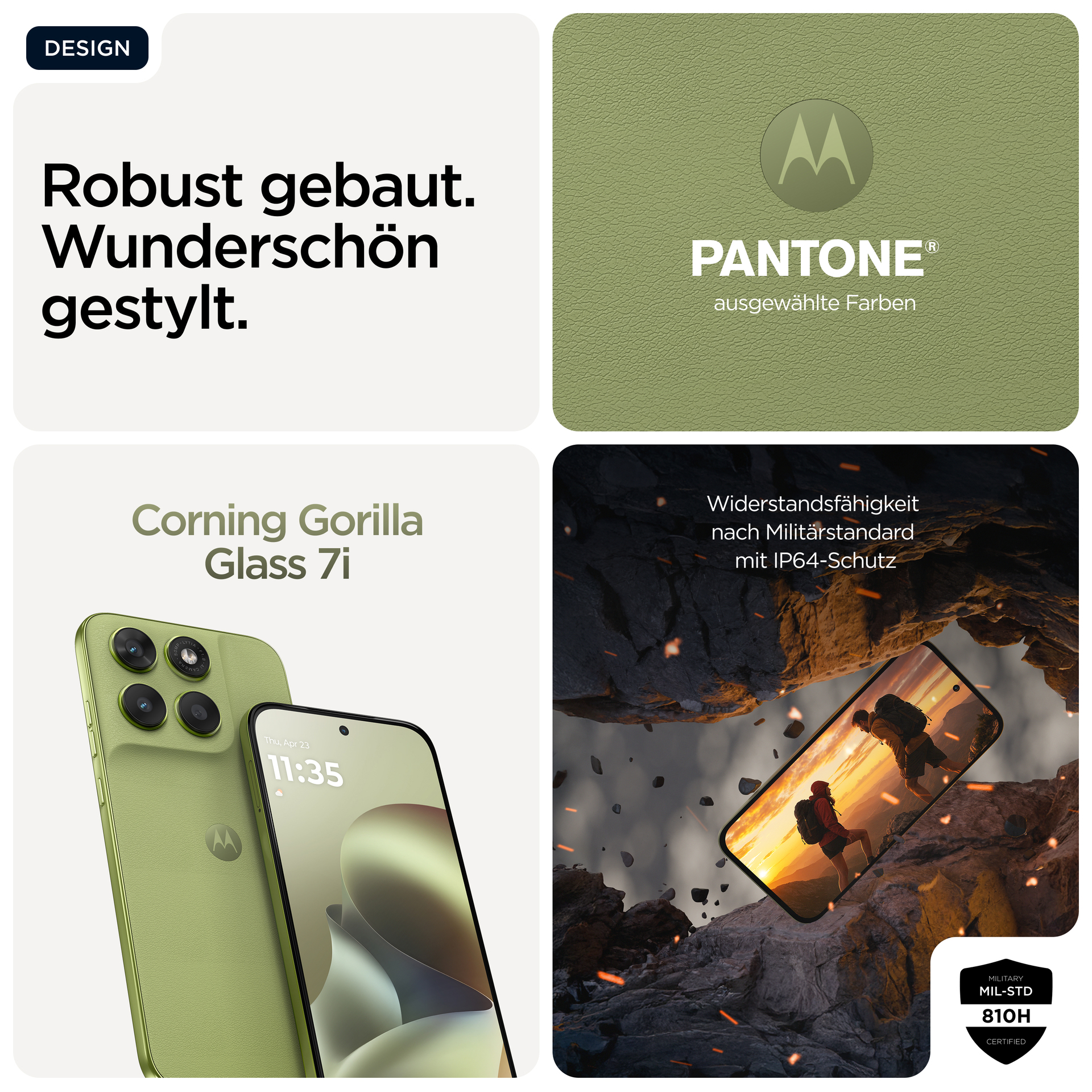 Motorola präsentiert das moto g67 – auf dem ultrahellen 1,5K-Super-HD-Display kannst du deiner Kreativität freien Lauf lassen. Genieße Filme, Serien und Spiele auf dem 17,22 cm (6,78 Zoll) Extreme AMOLED-Display mit 17 % schärferer Auflösung und fünfmal mehr Helligkeit. Mit der 50-MP-Sony LYTIA-Kamera gelingen dir dank moto ai geniale Fotos – bei Tag und Nacht. Mit dem 2x verlustfreien Zoom gelingen schärfere, hellere Aufnahmen - auch bei Dunkelheit oder aus der Ferne. Mit Pantone-Designs, militärische Robustheit, sorgenfreier Wasserresistenz und 2x besserem Display Sturz- und Kratzfestigkeit bleibst du stylisch geschützt. Außerdem erlebst du hohe 5G-Geschwindigkeiten, eine lange Akkulaufzeit mit TurboPower-Aufladen und immersives Audio über Stereo-Lautsprecher. Mit dem neuen moto g67 erlebst du deine Kreativität in neuem Licht.