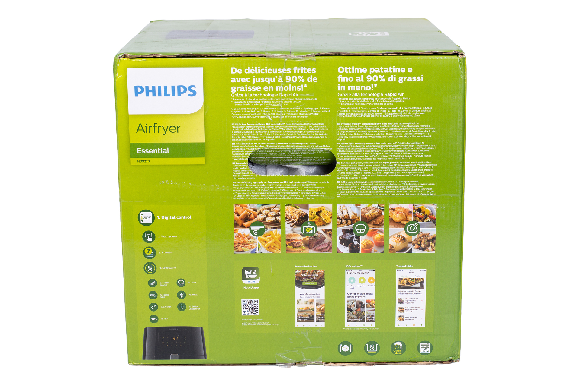 Genieße dank der Rapid Air Heißlufttechnologie gesünderes Essen, das außen knusprig und innen zart ist. Lade die HomeID App herunter und entdecke täglich Hunderte leckere Rezepte.
