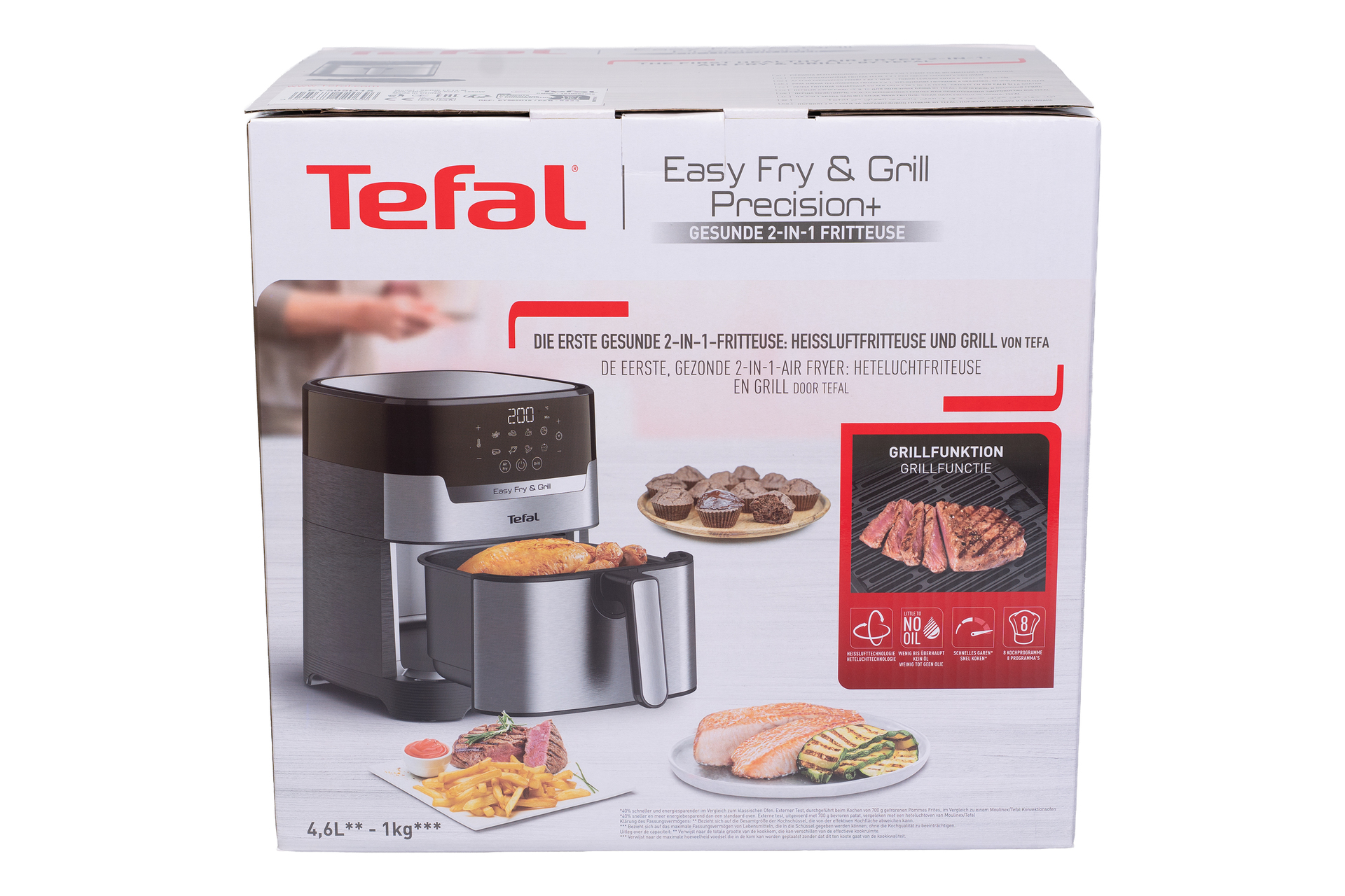 - 8 automatische Programme: Pommes Frites, Nuggets, Gegrilltes Hähnchen, Pizza, Fleisch, Fisch, Gemüse, Nachspeisen