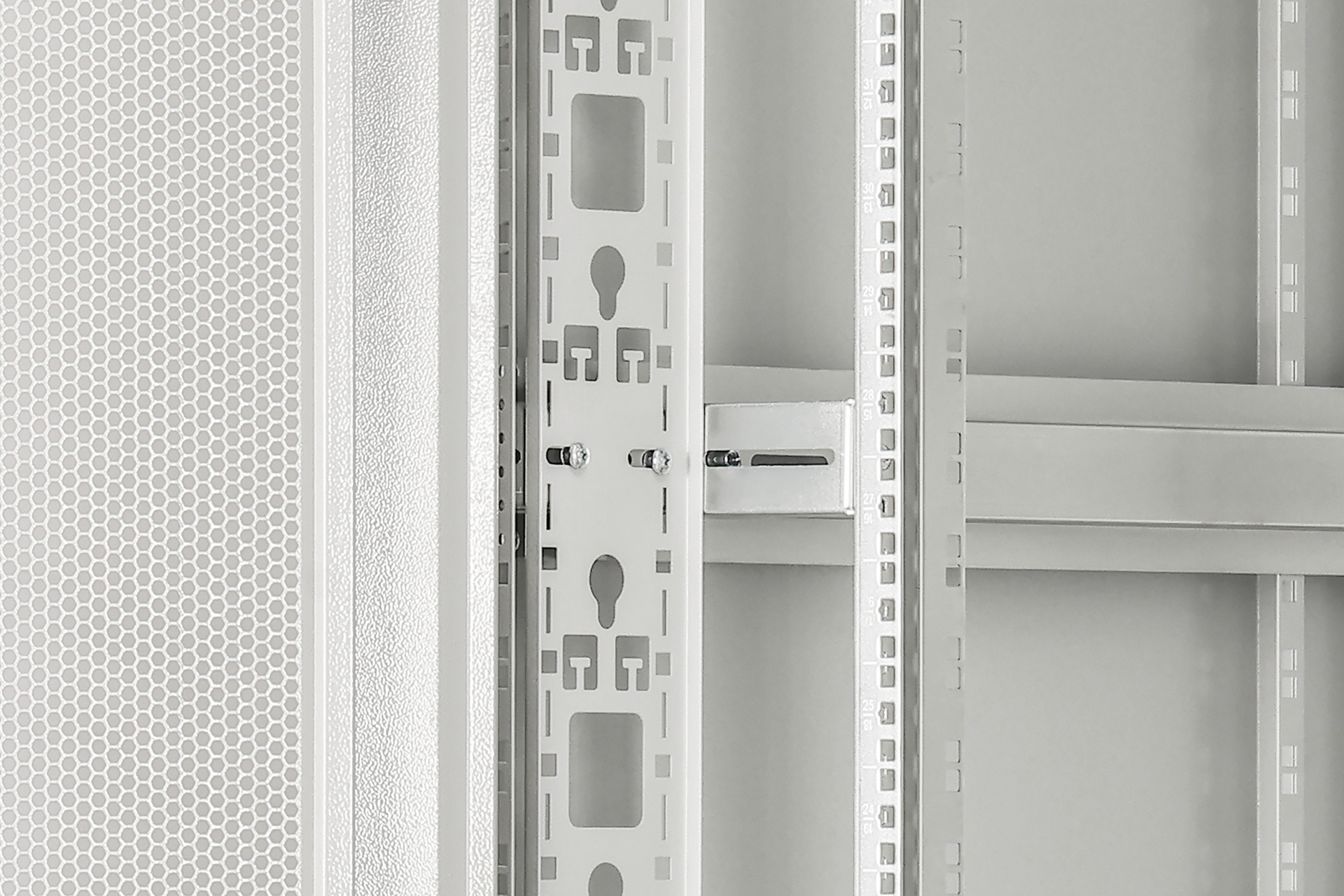 • Integrierte PDU-Halterungen im hinteren Schrankbereich links und rechts