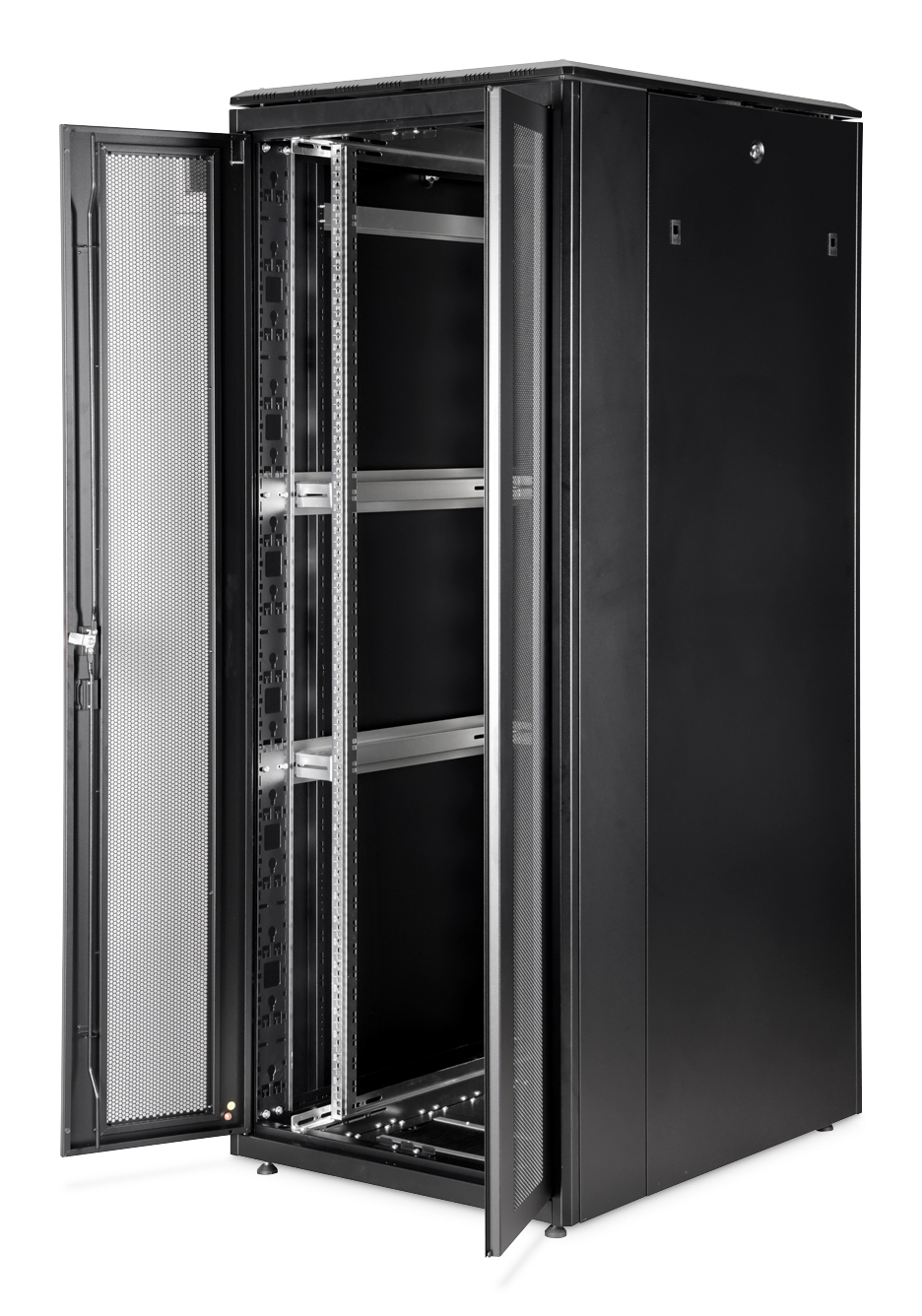 - Integrierte PDU-Halterungen im hinteren Schrankbereich links und rechts