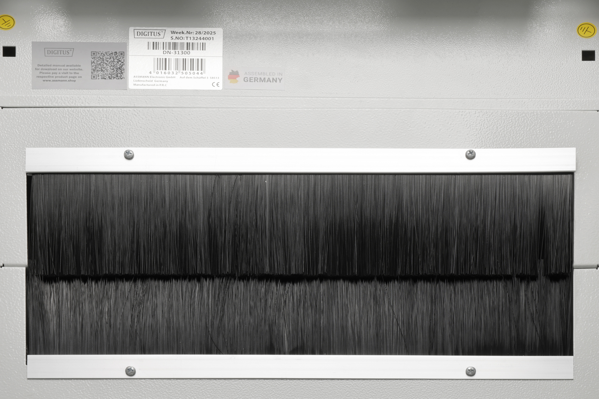 - Flexible Möglichkeiten zur Kabelführung durch großzügige Kabeleinlässe mit Bürsten im Boden