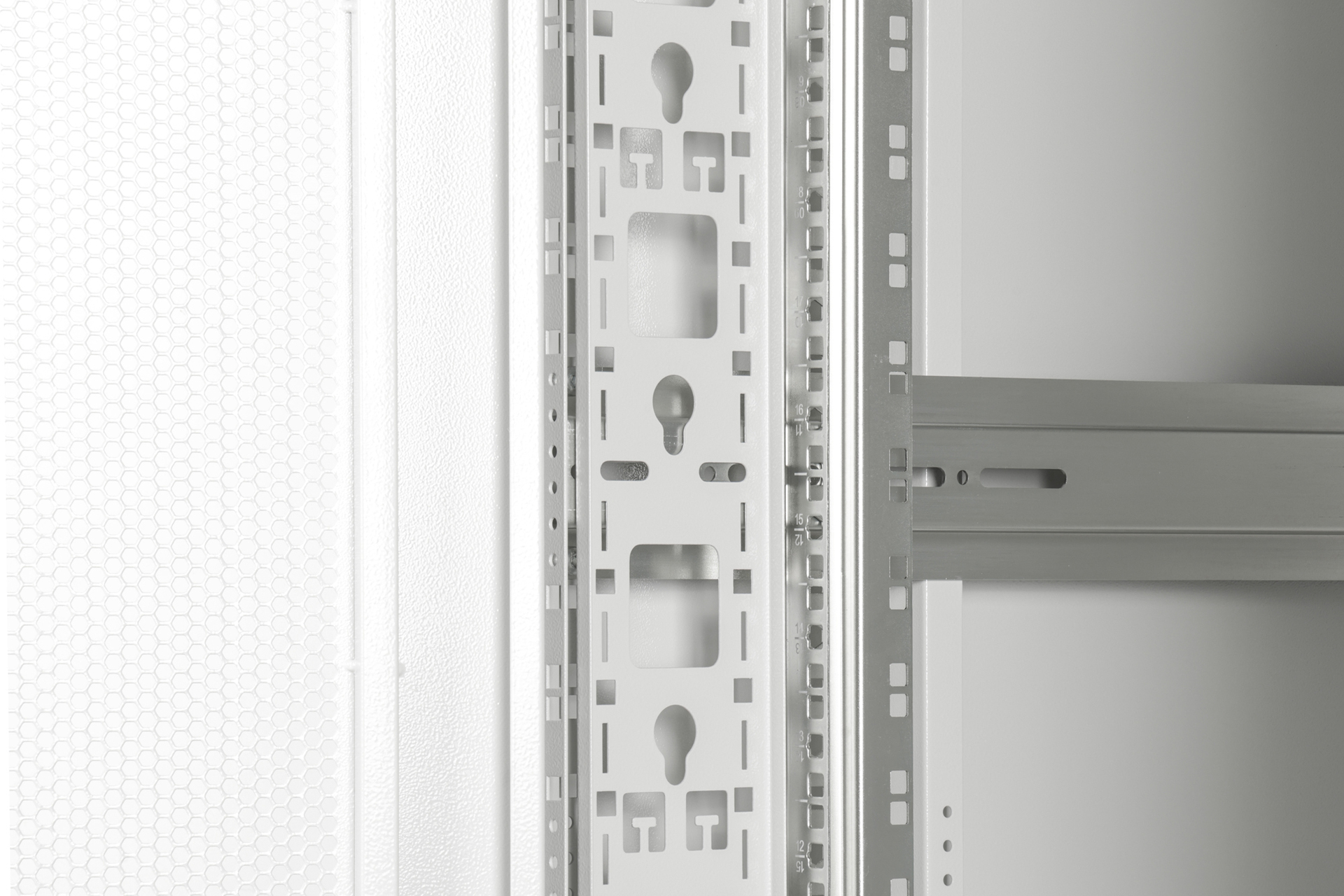 - Integrierte PDU-Halterungen im hinteren Schrankbereich links und rechts