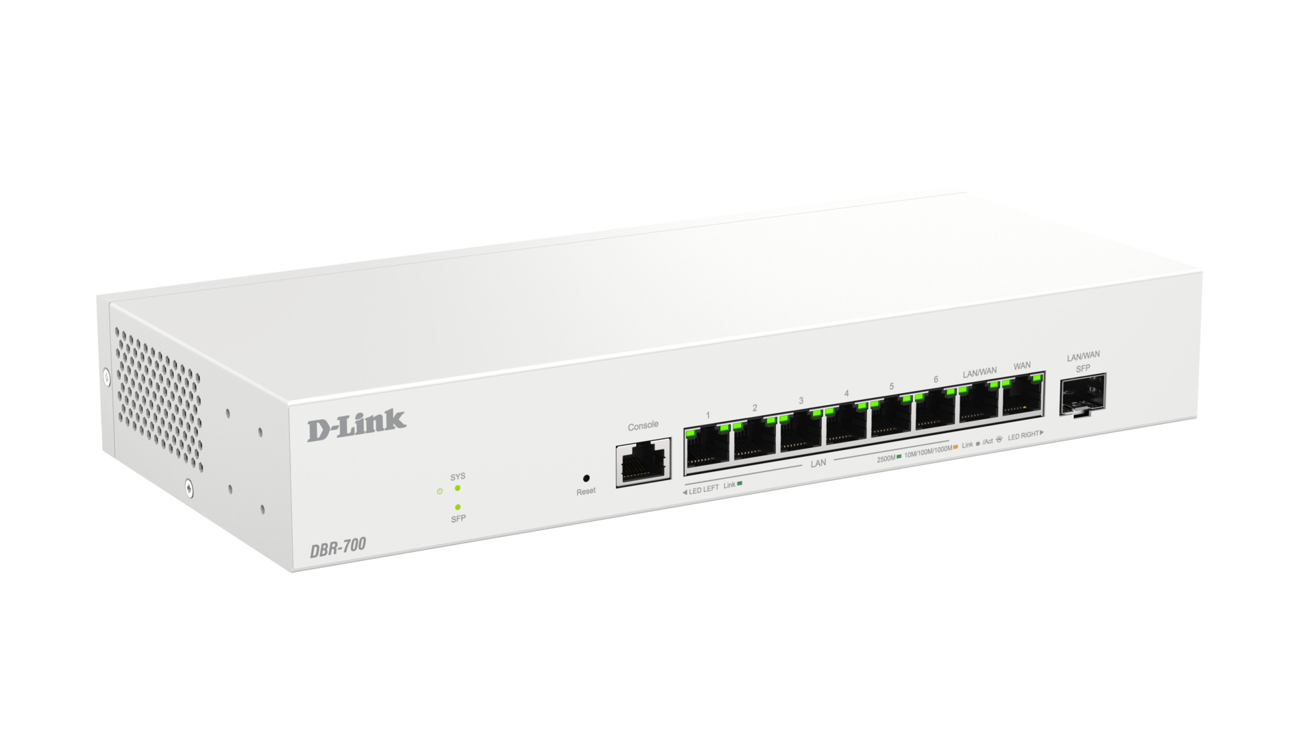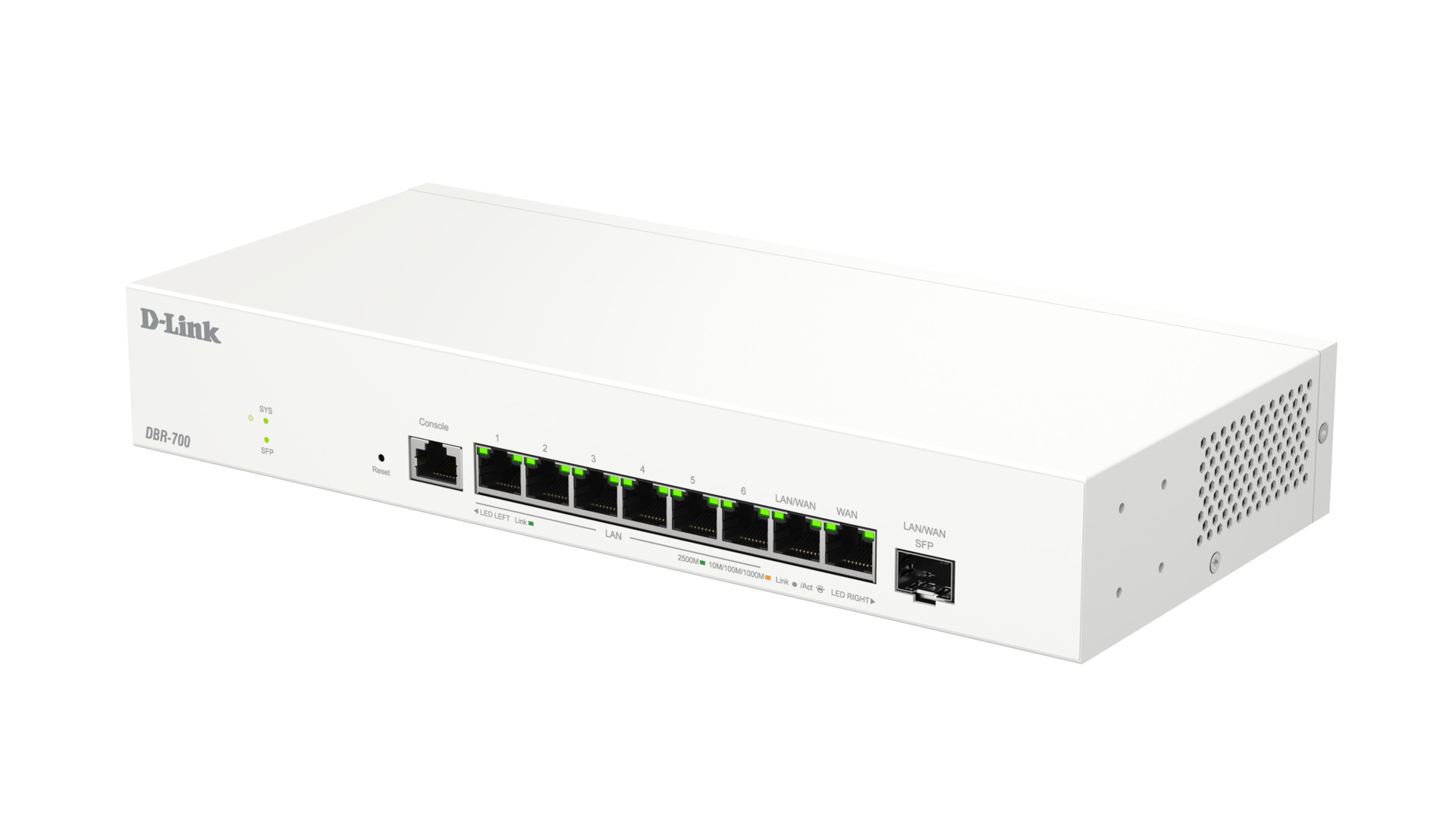 Der DBR-700 ist ein leistungsstarker Router mit 2,5-Gigabit-Schnittstellen, einschließlich SFP-Ports, die eine flexible und stabile kabelgebundene Konnektivität bieten, insbesondere für die Übertragung über große Entfernungen. Ideal für Anwendungen im SMB. Die Multi-WAN-Funktionalität gewährleistet unterbrechungsfreies Netzwerk, indem automatisch auf eine Backup-WAN-Verbindung und einen Loadsharing-Internetzugang gewechselt wird. Mit einer leistungsstarken Firewall und der Unterstützung von IPsec-VPN-Tunneln ist der Fernzugriff immer sicher und verschlüsselt. Ein verbessertes AP-Management vereinfacht die zentrale Kontrolle mehrerer Access Points und macht den DBR-700 zu einer ausgezeichneten Wahl für Unternehmen, die ein zuverlässiges, sicheres und schnelles Netzwerk suchen.
