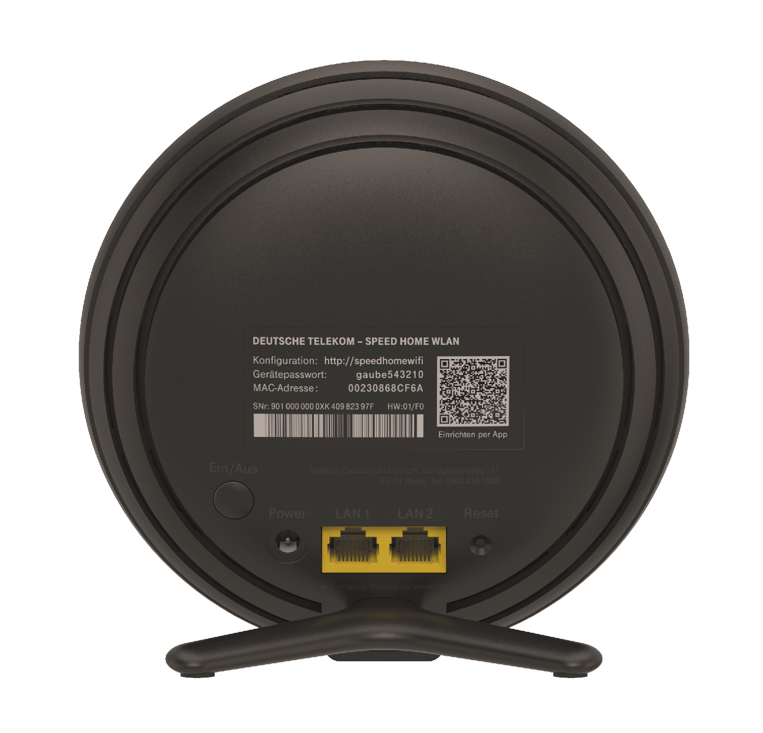- Gäste-WLAN: Speed Home WLAN sendet in Verbindung mit einem Mesh-fähigen Speedport und dem entsprechenden Leistungsmerkmal im Speedport, das dort aktivierte Gäste-WLAN aus