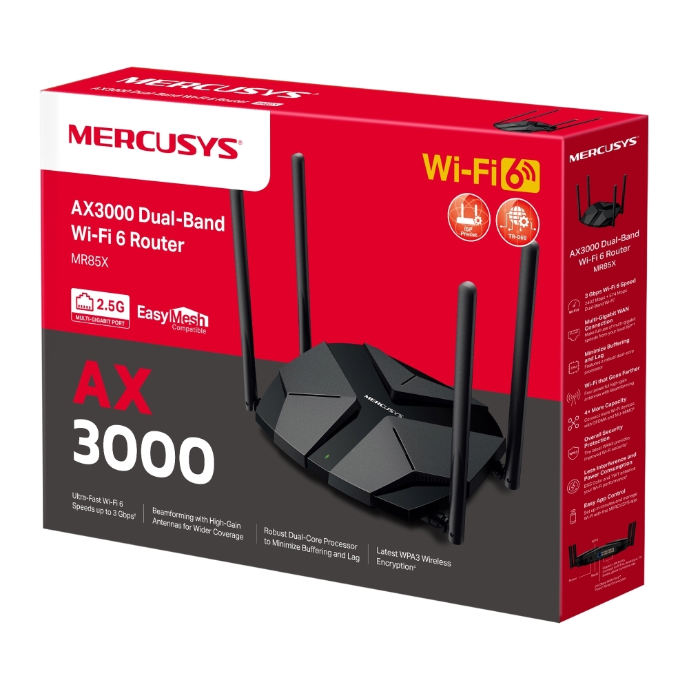 - Mercusys MR85X AX3000 Dual-Band Wi-Fi 6 Router